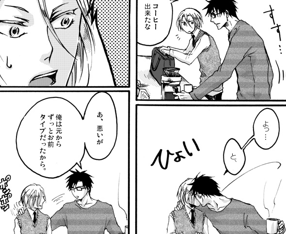その合同誌の自分のキャラといったら、実は攻めがメガネ!あら珍しい